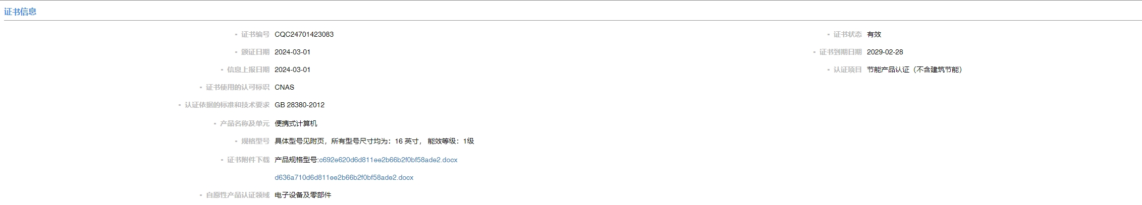 | 1 | 笔记本电脑 | 1(台) | ¥5,999.00 | ¥5,999.00 | 中国节能产品认证证书编号:CQC24701423083 中国节能产品认证证书有效期:2029-02-28 中国节能产品认证证书扫描件:查看 CPU系列:AMD 锐龙 CPU型号:AMD R7-8845H CPU三级缓存容量:16MB CPU主频:5.0GHz CPU线程数:16 CPU缓存:L3 CPU核数:8核 内存容量:32GB 内存条数:1 内存类型:LPDDR5 内存频率:6400MHz 硬盘类型:固态硬盘 固态硬盘类型:M.2 固态硬盘容量:1TB 固态硬盘协议:NVME 机械硬盘容量:无 机械硬盘转速:无 机械硬盘缓存:无 机械硬盘规格:无 显卡类型:集成显卡 显存容量:2G 显存频率:780MHz 显存位宽:256位 显示器尺寸(英寸):16 色深:8bit 刷新率:120Hz 触摸屏:无 屏幕最大开合角度:120 低蓝光模式:不支持 最大分辨率(垂直):1600 最大分辨率(水平):2560 操作系统:Windows 11 光驱:无光驱 颜色分类:灰色 无线网卡:有 有线网卡:无 蓝牙:有 DVI接口数量:0 ExpressCard插槽:0 MiniPCI-E 插槽数量:0 音频接口数量:1 HDMI接口数量:1 mini HDMI接口数量:0 DP接口数量:0 mini DP接口数量:1 Type-c接口数量:1 多功能Type-c接口数量:1 内置音箱:有 内置摄像头:有 标配鼠标:无 标配电脑包:无 标配键盘:有 平均无故障时间:无 质保期限:1年 包装清单:笔记本主机x1、电源适配器x1、说明书x1、三包凭证x1 售后服务:1年 产地:北京 电池容量:84Wh |